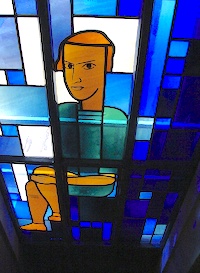 Als erfahrene Glasmaler realisieren wir Entwürfe von spezialisierten Künstlern wie zum Beispiel dieses Kirchenfenster von Christoph Häfliger oder führen als Kunstglaser eigene Entwürfe auf Basis von Kundenwünschen aus.